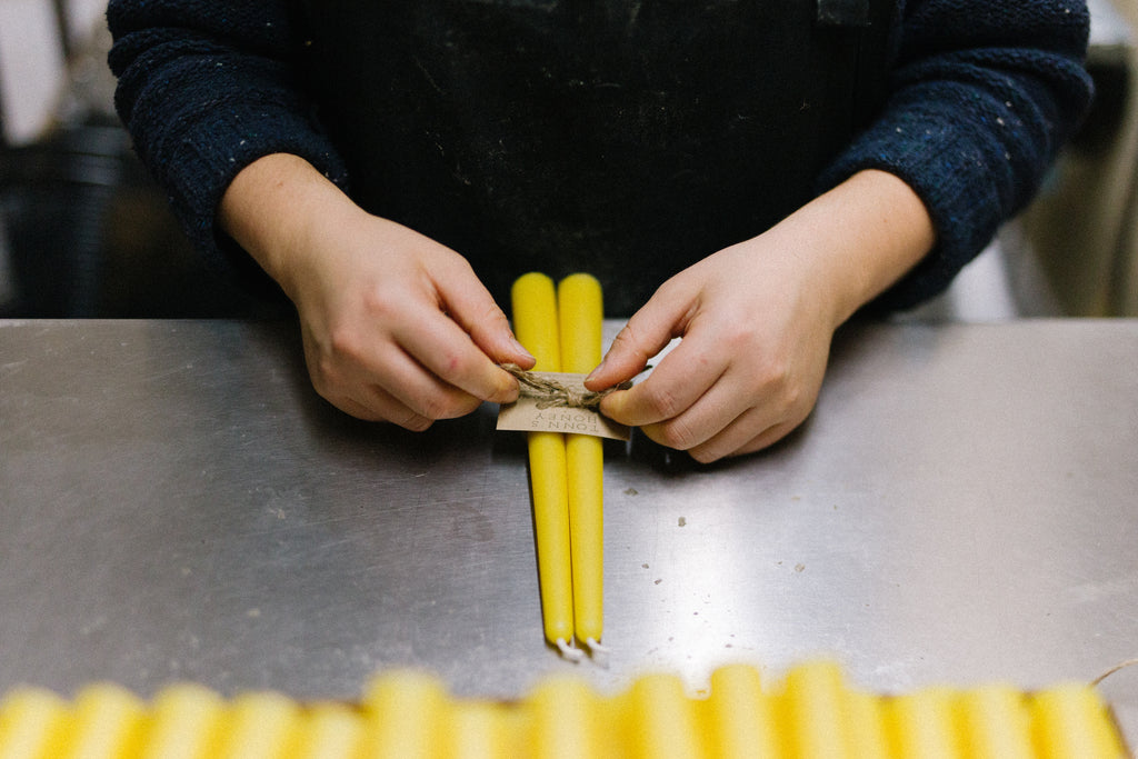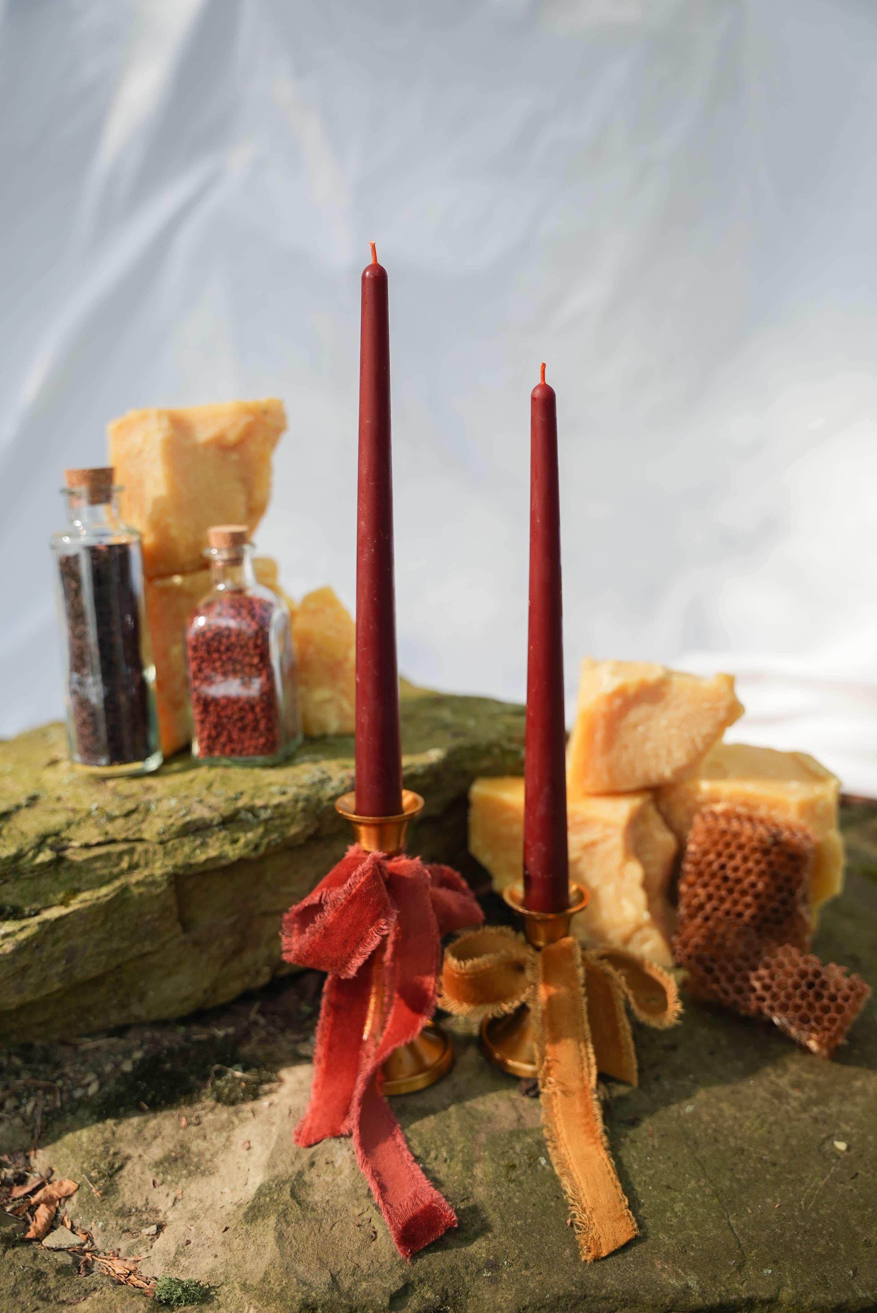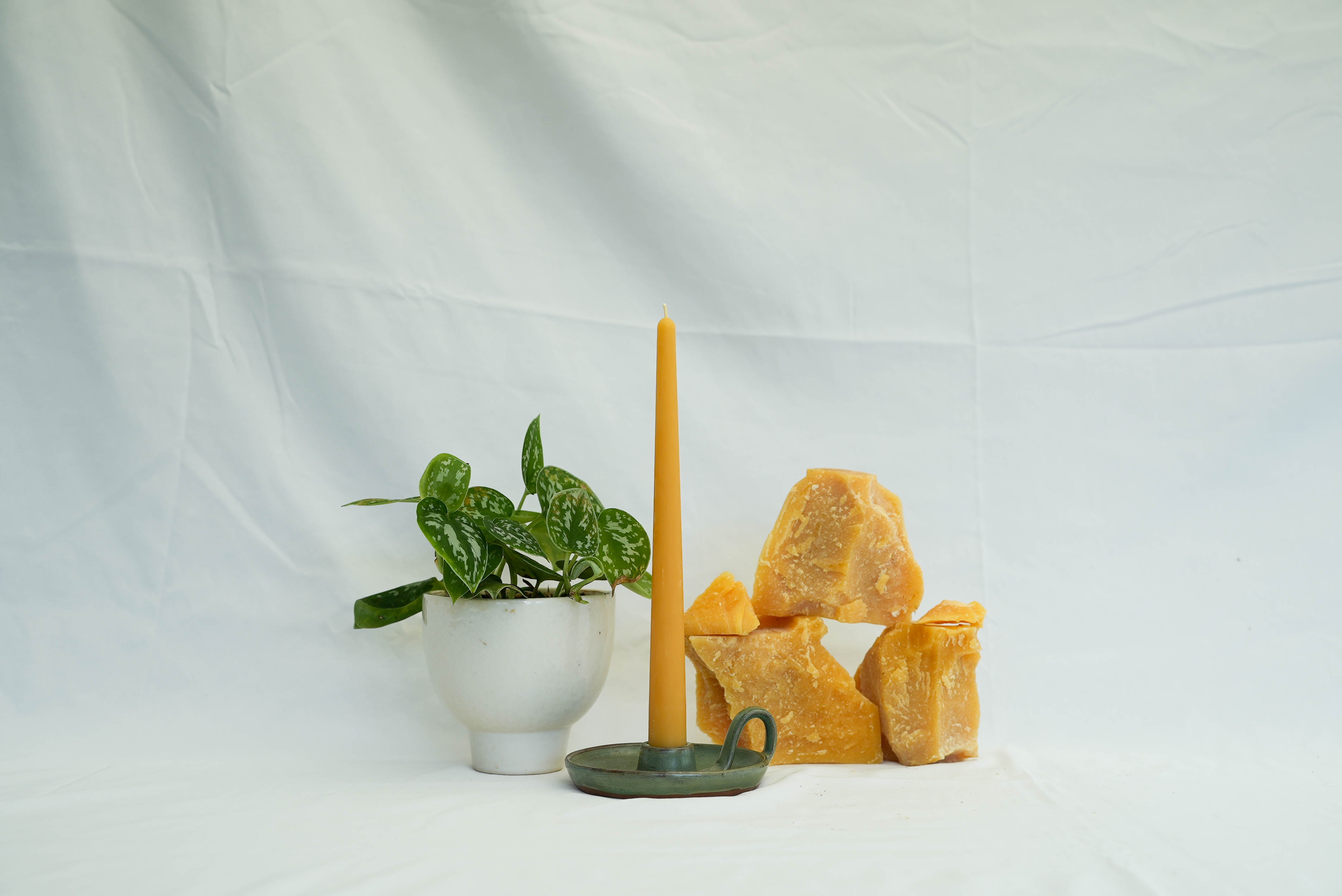 Burning tips: Trim your wick to 1/4″ before lighting again. Keep away from drafts, vents, open windows, small children, pets, and flammable objects that could catch fire. Never leave your candle unattended. Burn candle until the edge is melting to prevent tunnelling. Stop burning your taper candle when there’s about 1/2″ of beeswax left to prevent overheating your vessel. (But don’t throw away your leftover beeswax!)