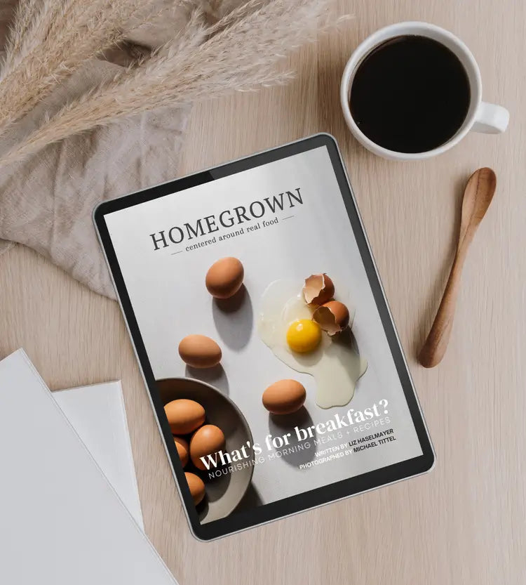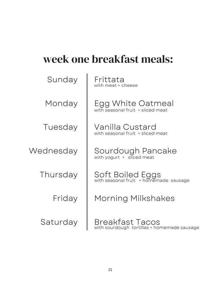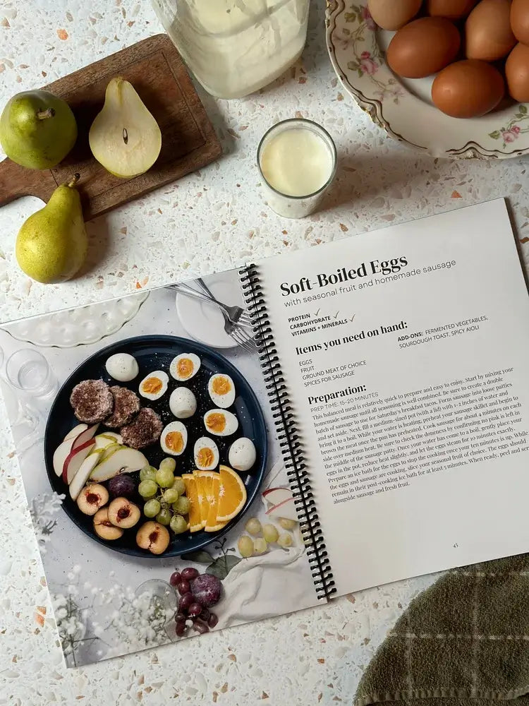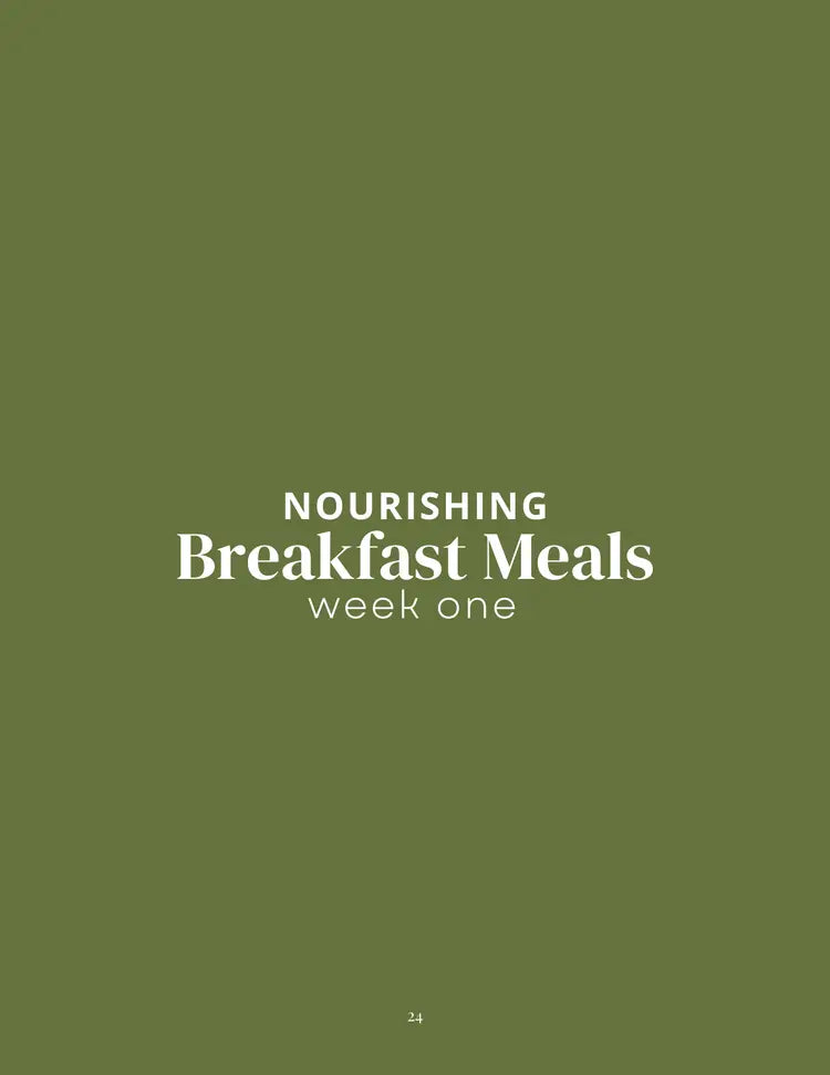 Cookbook featuring 2 weeks of nourishing breakfast meal plans and 20+ real food recipes.
