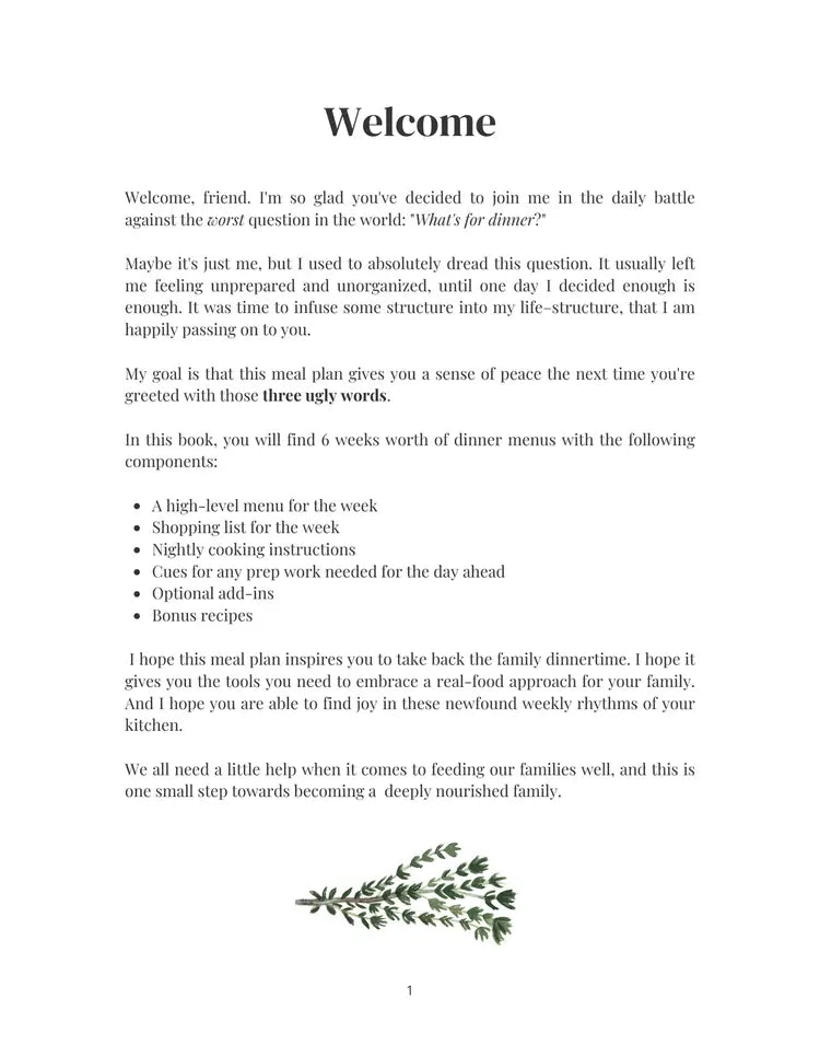 Rather than just giving you recipes, this plan teaches you kitchen rhythms and meal structure that will serve you long after the six weeks end.